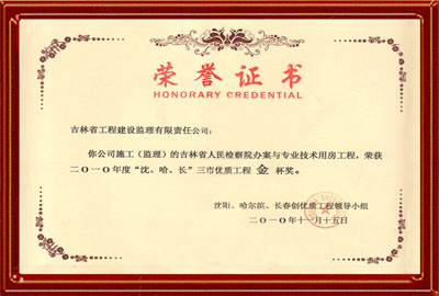 該工程榮獲2010年度“沈、哈、長三市優質工程金杯”獎